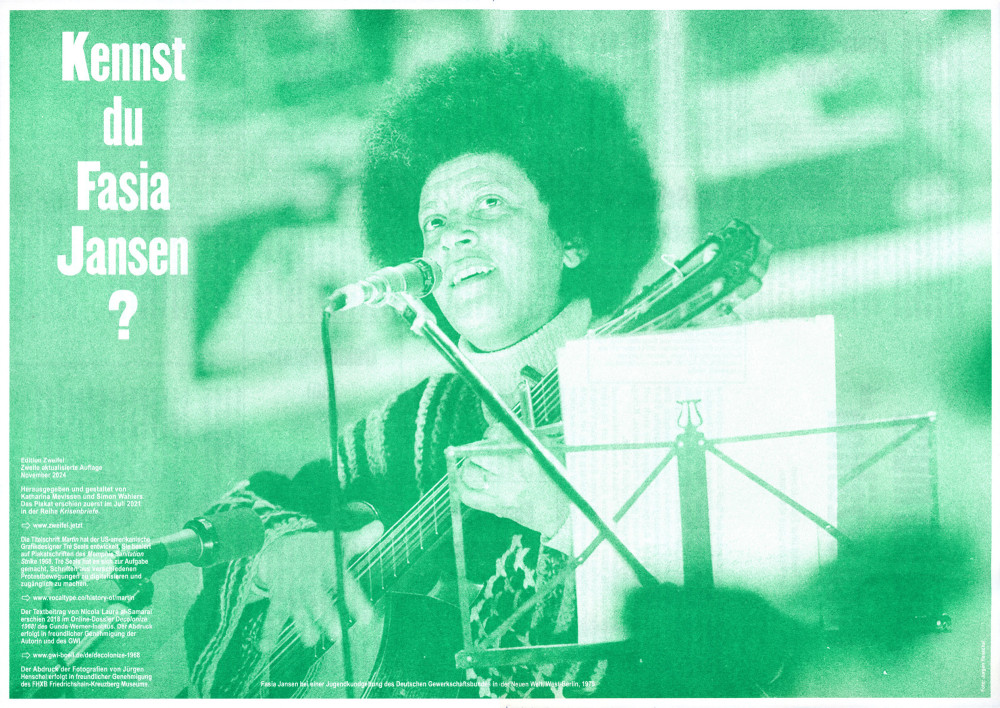 Kennst du Fasia Jansen? Faltplakat mit einem Portrait von Nicola Lauré al-Samarai.