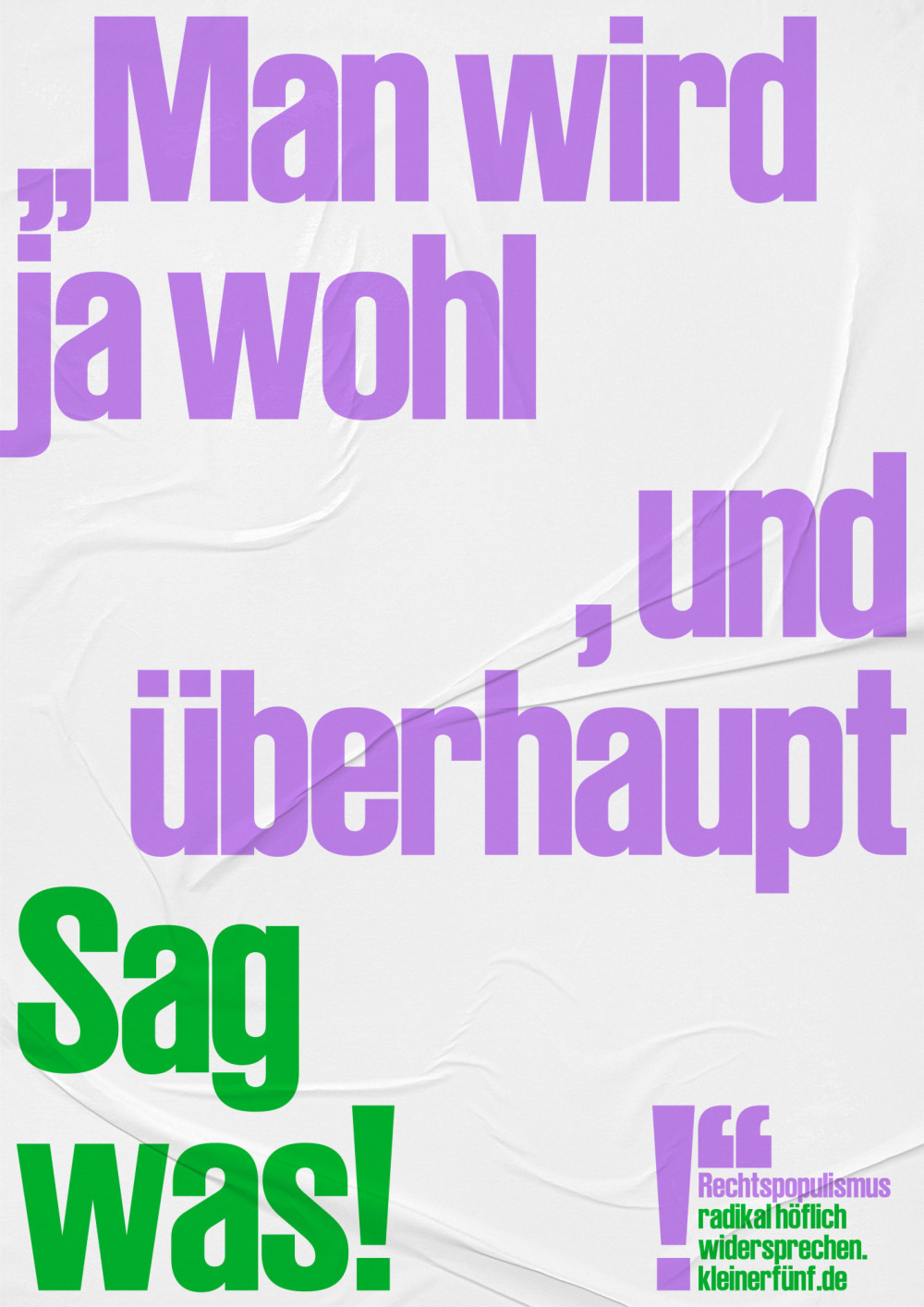 Sag was! Rechtspopulismus radikal höflich widersprechen. Die Plakate können kostenfrei bei Kleiner Fünf bestellt werden.