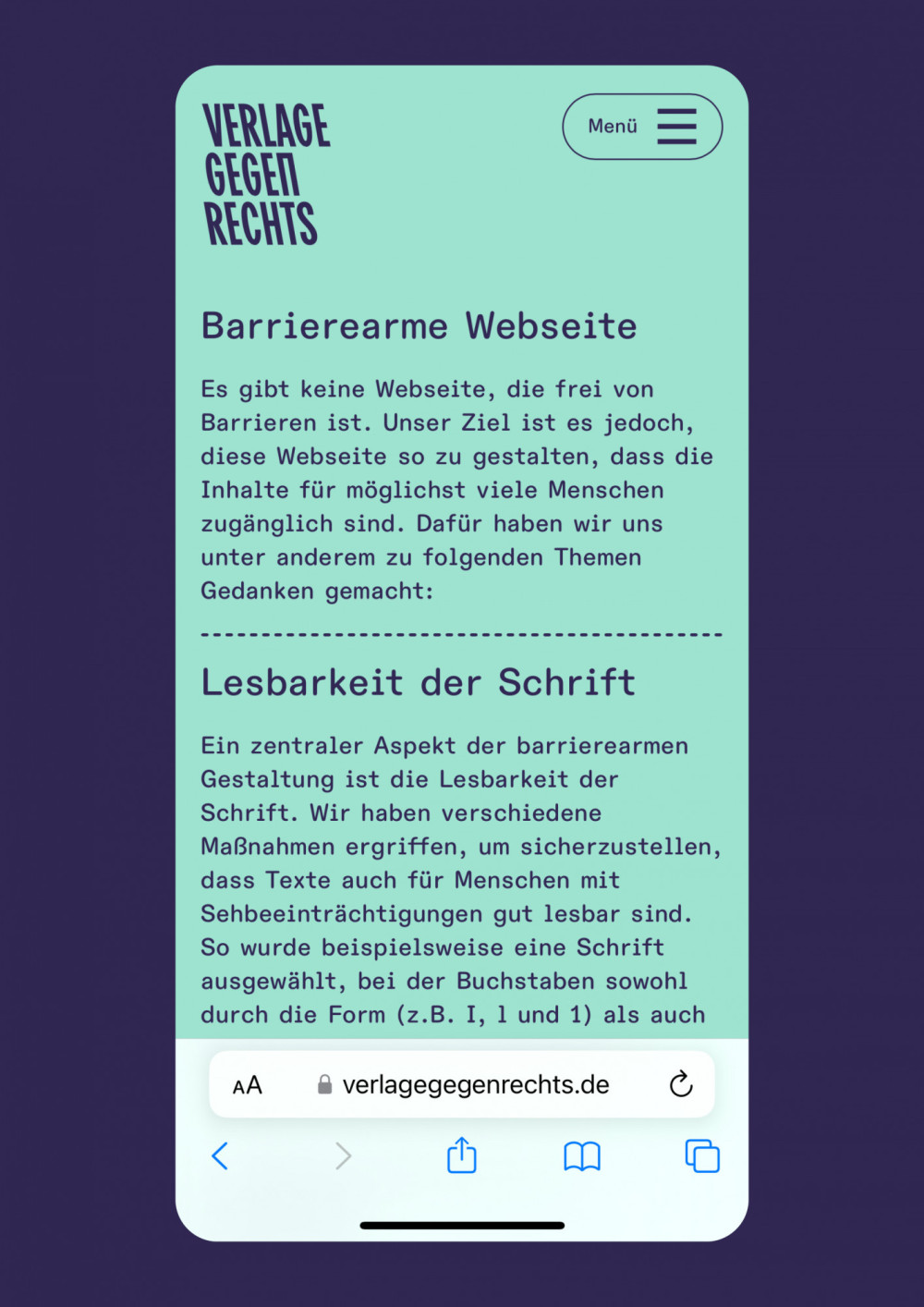 Es gibt keine Webseite, die frei von Barrieren ist. Für Verlage gegen Rechts haben wir jedoch versucht eine Webseite so zu gestalten, dass die Inhalte für möglichst viele Menschen zugänglich sind. Die technische Umsetzung kommt von Thomas Günther.