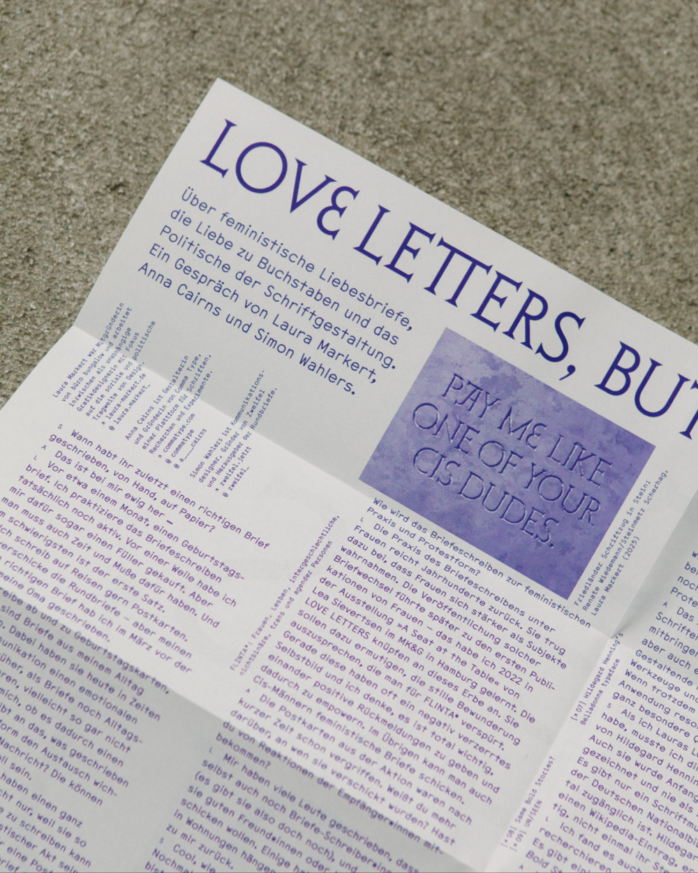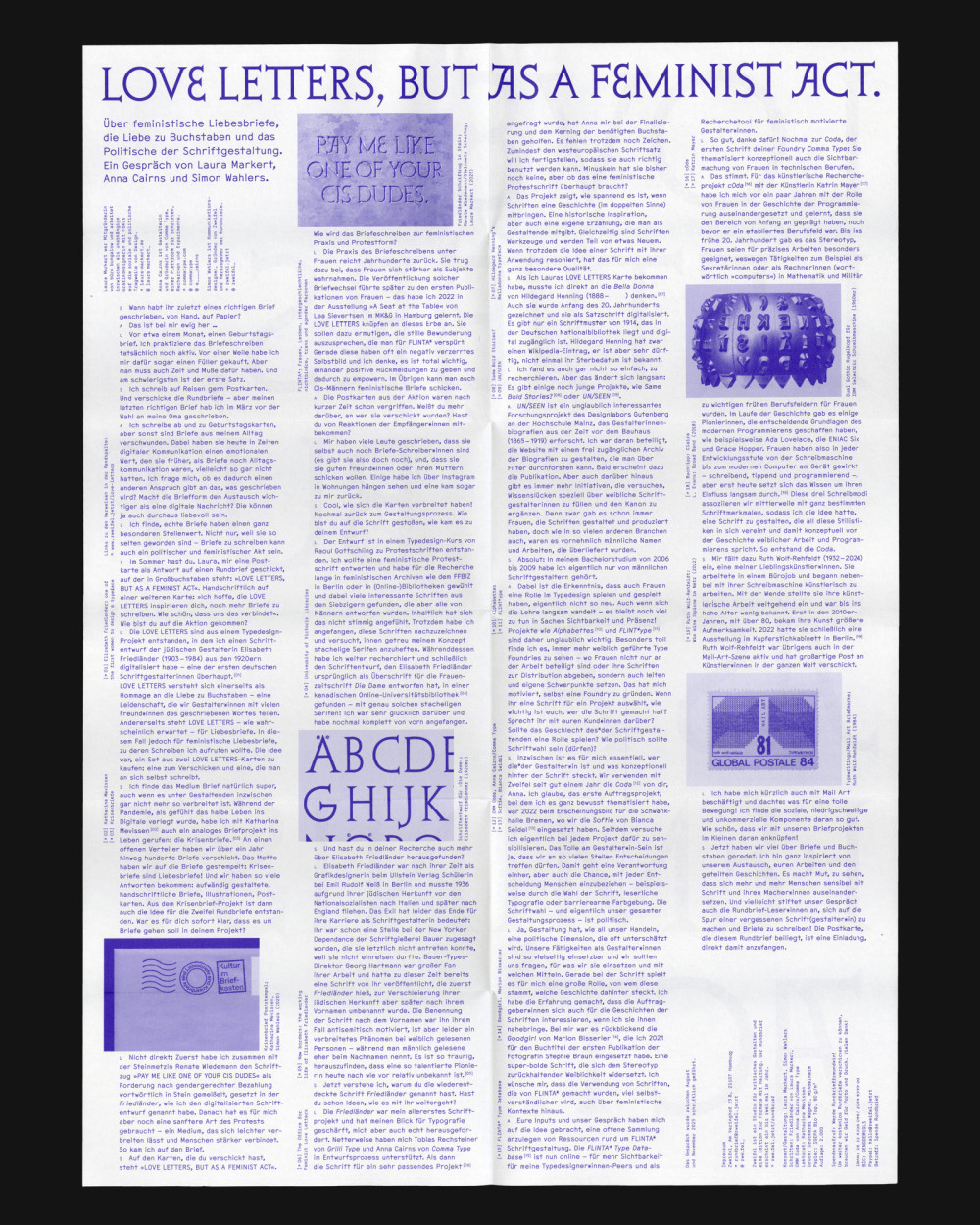 Rundbrief 6 über feministische Liebesbriefe, die Liebe zu Buchstaben und das Politische der Schriftgestaltung. Ein Gespräch von Laura Markert, Anna Cairns und Simon Wahlers.