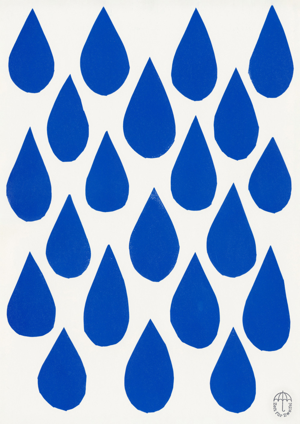 Am 14. Januar 2023 hat es den ganzen Tag geregnet: Zwischen Aachen und Düsseldorf, 50 Kilometer westlich von Köln sind 35.000 Menschen durch den Matsch gegangen. Fürs Klima, eine gerechtere Welt und gegen das Abbaggern der Kohle unter dem Dorf Lützerath durch den Energiekonzern RWE. Wir haben an diesem Regentag in Hamburg gedruckt und Regen gegen Spende verschickt. So sind 679,21 Euro zusammengekommen. Fürs Klima, genauer gesagt für drei Organisationen, die sich dafür einsetzen und seit Jahren für den Erhalt von Dörfern und der Natur im Rheinischen Gebiet kämpfen: Alle Dörfer bleiben, Lützerath lebt und Fridays for Future.